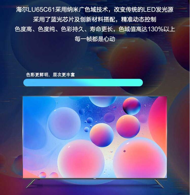 Haier/海爾 LU65C61 65英寸全面屏4K超高清智能網(wǎng)絡(luò)液晶電視機(jī)